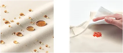 このブランドのアイテムには、全てFAIRE UN CALINオリジナルの撥水加工をしているため素材本来の風合を損なわず、水や泥水、コーヒーなどをはじき、ケチャップなどもさっと拭いたり、洗い流すことで汚れを落とすことができます。また、残った汚れも洗濯機で洗えば、よりキレイに落とすことができます。