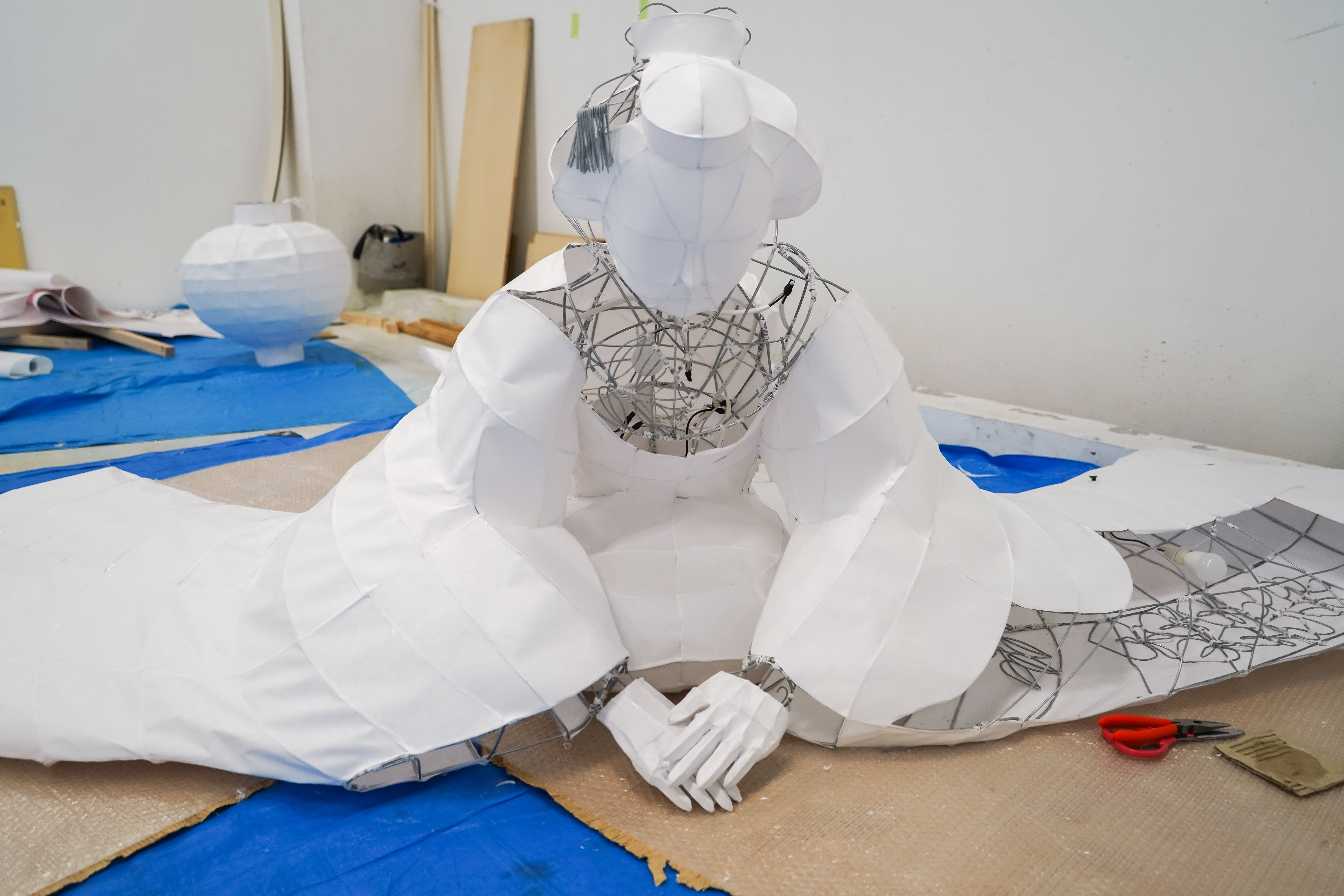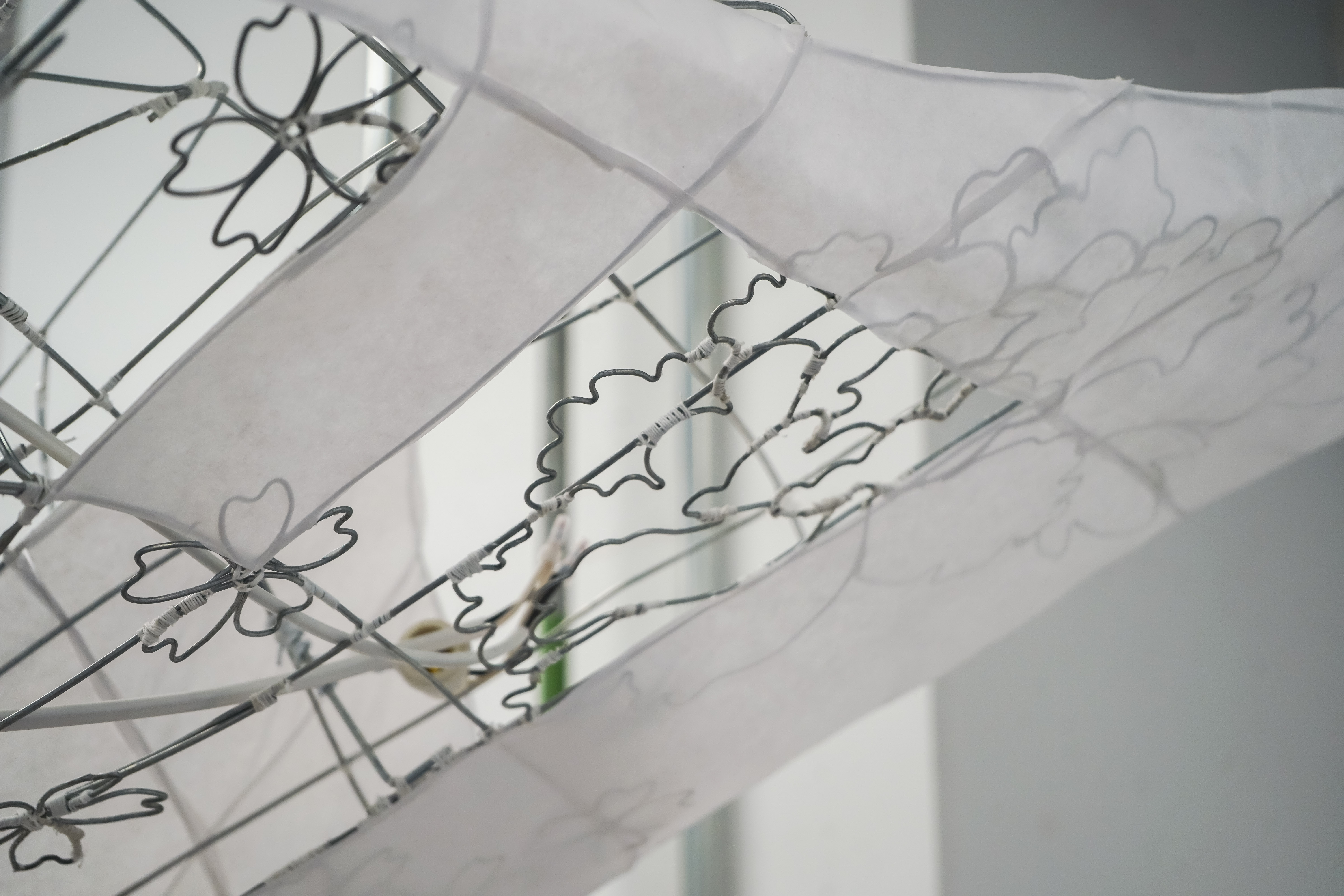 (3)針金と白い和紙を使い、約2か月をかけて学生が全て手作業で作り上げました。