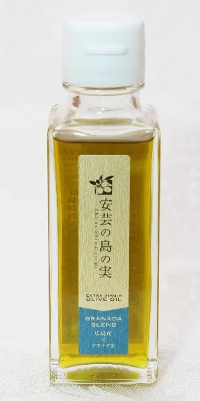 「安芸の島の実 江田島搾り」と、世界最大のオリーブオイル生産国スペインの南部グラナダ地域で作られた良質なエクストラバージンオリーブオイルを江田島の自社加工場でブレンド。グリーンオリーブのフルーティーな香りが特徴のエクストラバージンオリーブオイルです。
