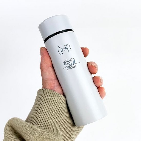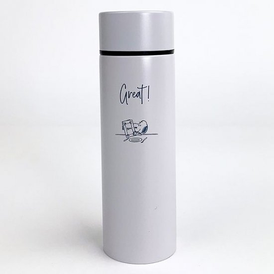 大人っぽさも感じる、シャイニーなグレーのポケトルです。テーブルシリーズのスヌーピーデザインがシンプルで、男女共に使いやすいボトルですよね。
