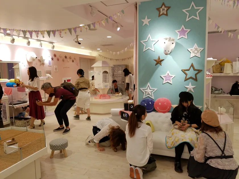 店内はうさぎ・モルモット・ハムスター・ハリネズミなどの小動物や猫、フクロウ、トカゲ、蛇など様々な動物たちが仲良く暮らしています。靴をぬいでゆったりまったり。まるで自宅にいるようにくつろげます。動物たちを間近に見たり、ふれあったり、おやつをあげたり楽しみ方も色々。ユニコーンなどのかわいい小物や雑貨、オリジナル商品を購入できる物販コーナーもあります。