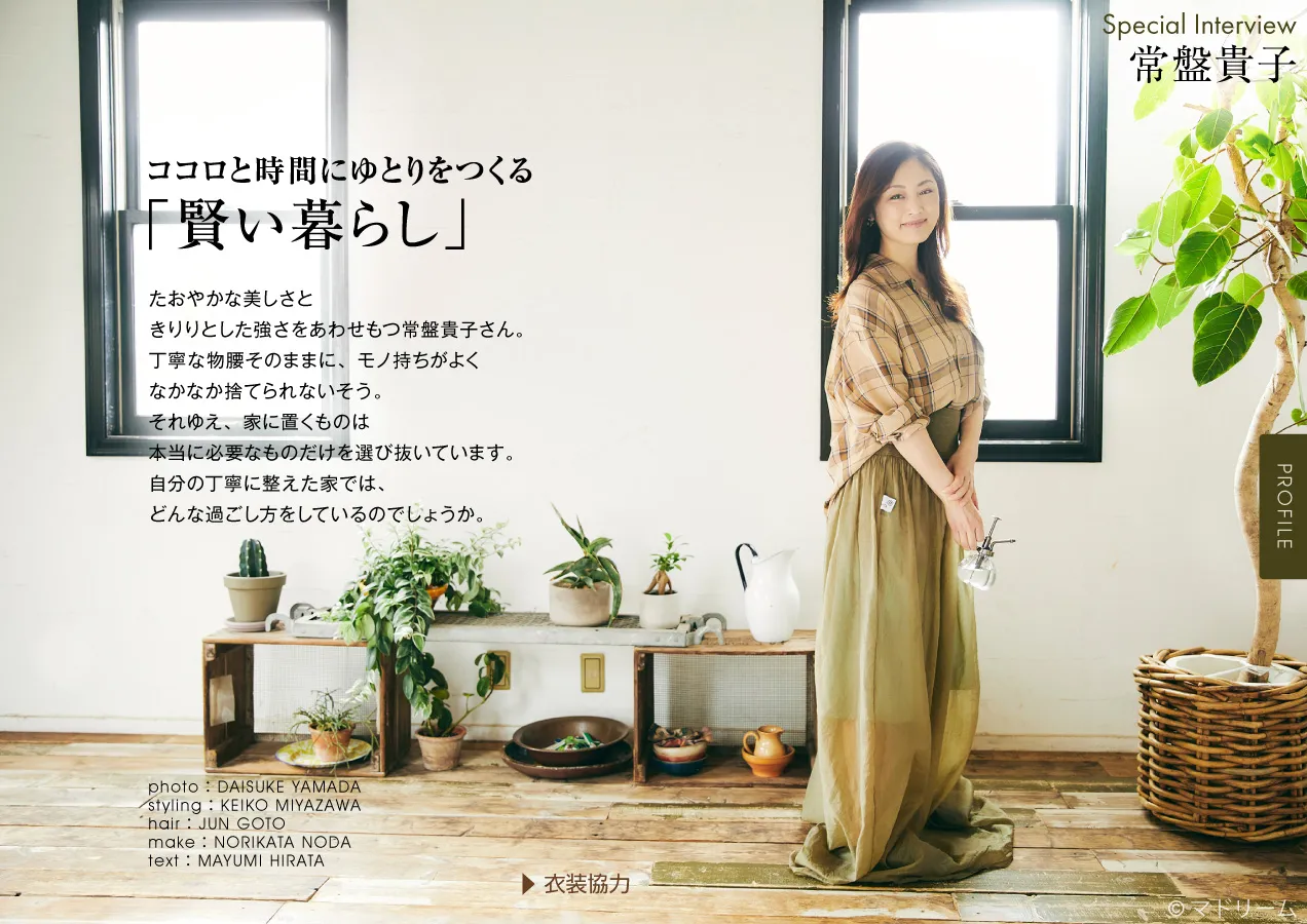 創刊4周年となるVol.25には、女優の常盤貴子さんが登場!「家が好きで、すぐ帰りたくなるんです」という常盤さんに、ふだん暮らしのなかで大切にしていることや豊かな時間を過ごす知恵など、たっぷりお話しを伺いました。