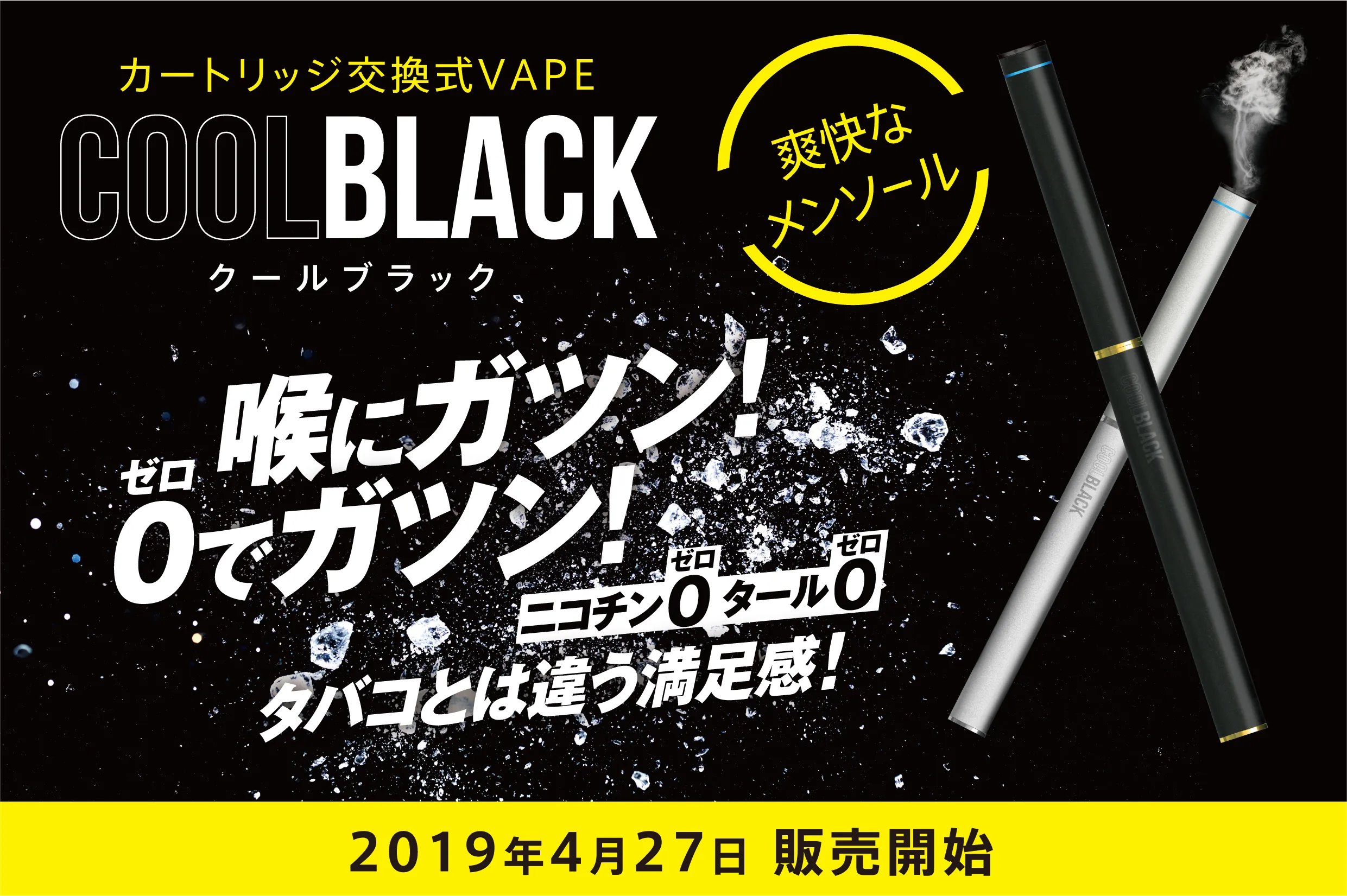喉に“ガツン”とくるメンソールの刺激! ニコチン“0”、タール“0”のVAPE新商品「COOLBLACK」 4月27日(土)より販売開始!