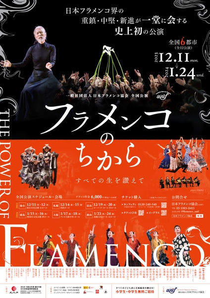 一般社団法人日本フラメンコ協会(東京都中野区)主催、全国公演『フラメンコのちから 〜The Power of Flamenco〜』は、ツアー前半の仙台・札幌・富山を大盛況に終え、2024年1月、ツアー後半の徳島・大阪・館山を巡演します。チケットはカンフェティ(運営:ロングランプランニング株式会社、東京都新宿区、代表取締役:榑松 大剛)にて発売中です。