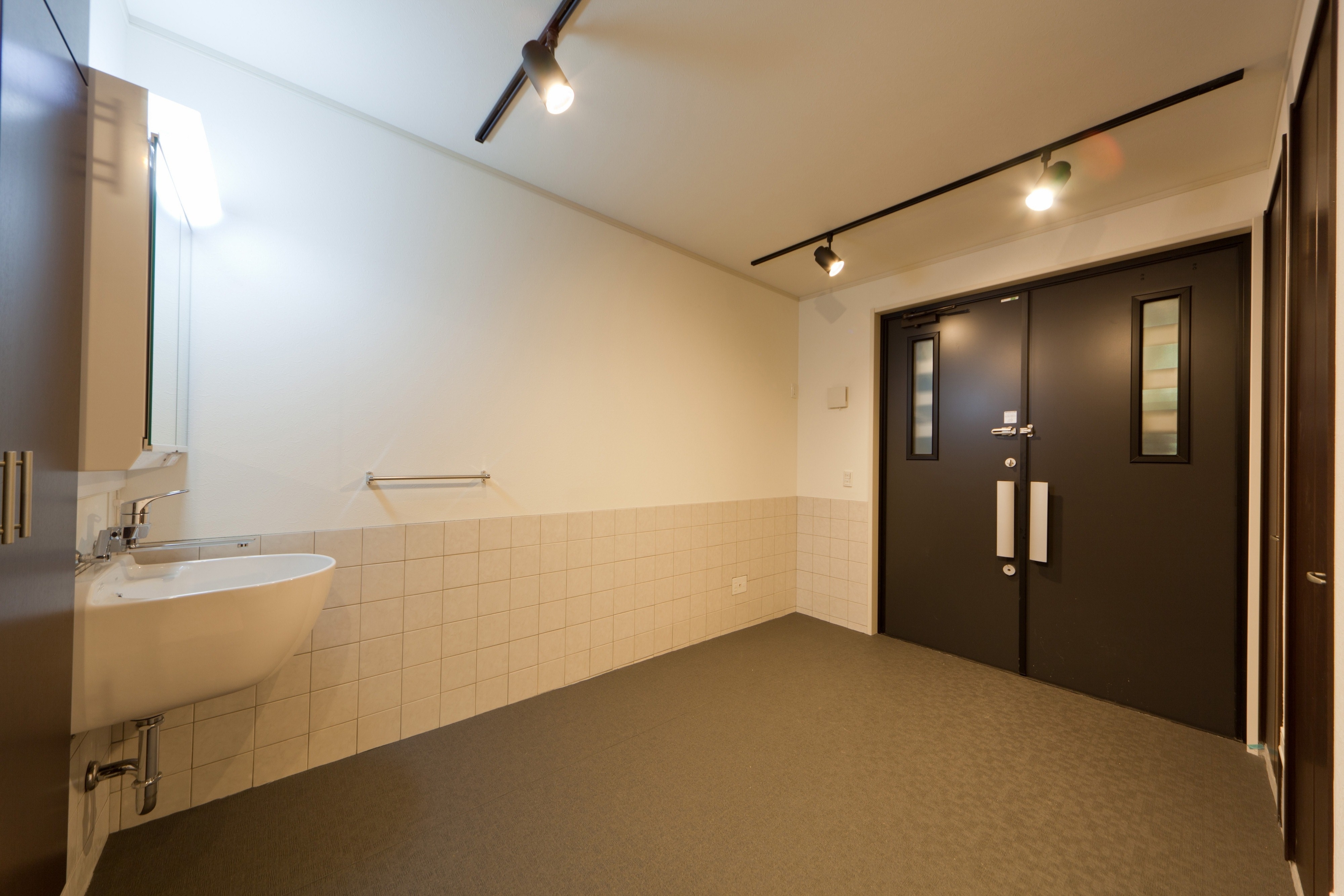 1階のバイクガレージ部分は、9.41平方メートルとバイクが2台入る広いスペースを用意。修理や整備の際、油が付いても簡単にふき取れるよう塩化ビニール素材で床を覆い、本格的なメンテナンスにも対応できます(エンジンをかけることも可能)。また、洗い場はもちろん、壁面にはタイルを設置しているため、室内での洗車も可能です。バイク用品などを保管できる収納を2つ、大型下駄箱も1つ用意。さらに本ガレージスペースは多目的スペースとしても活用できるため、バイク仲間とのちょっとした交流やパーティースペースとしても利用していただけます。