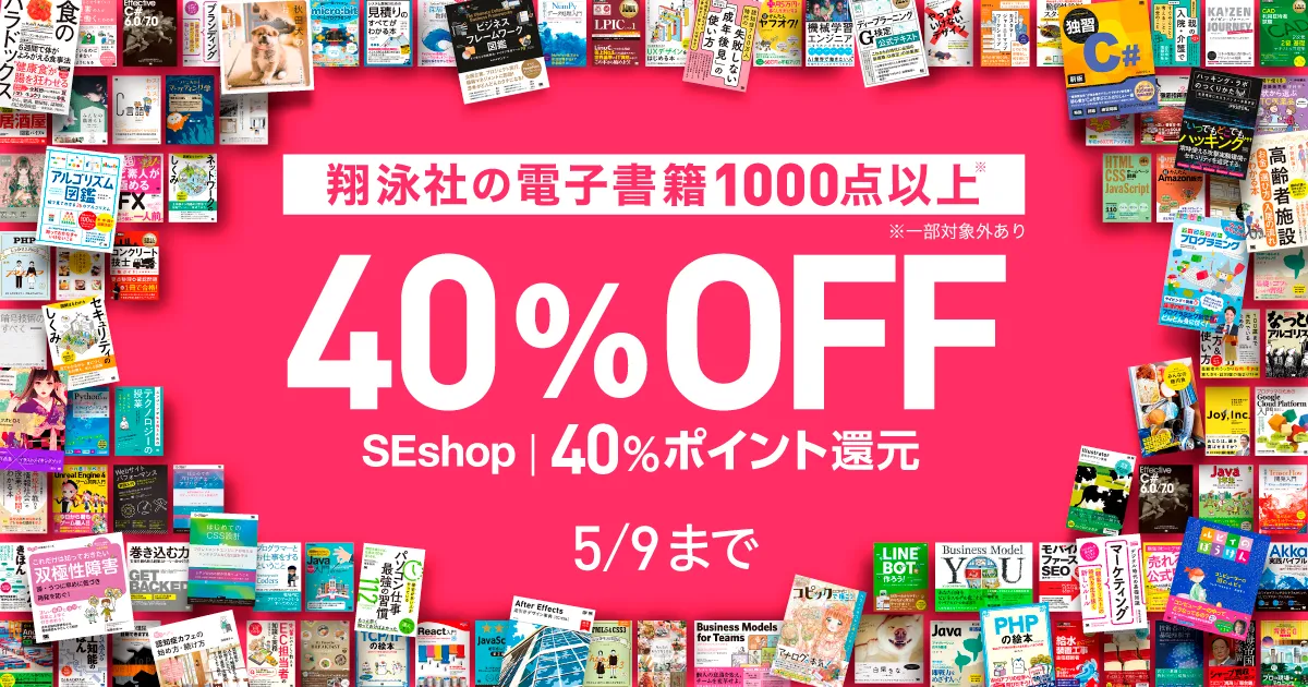 Kindleは40%割引、翔泳社が直販するSEshopでは40%ポイント還元いたします。