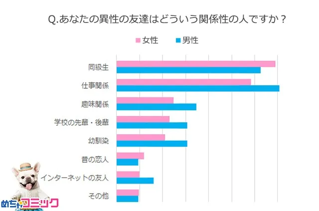 株式会社アムタス(東京都渋谷区 代表取締役社長 黒田淳)が提供する電子コミック配信サービス「めちゃコミック(めちゃコミ)」では会員を対象に、「異性の友人」に関するアンケートを行いました。その調査結果を報告いたします。