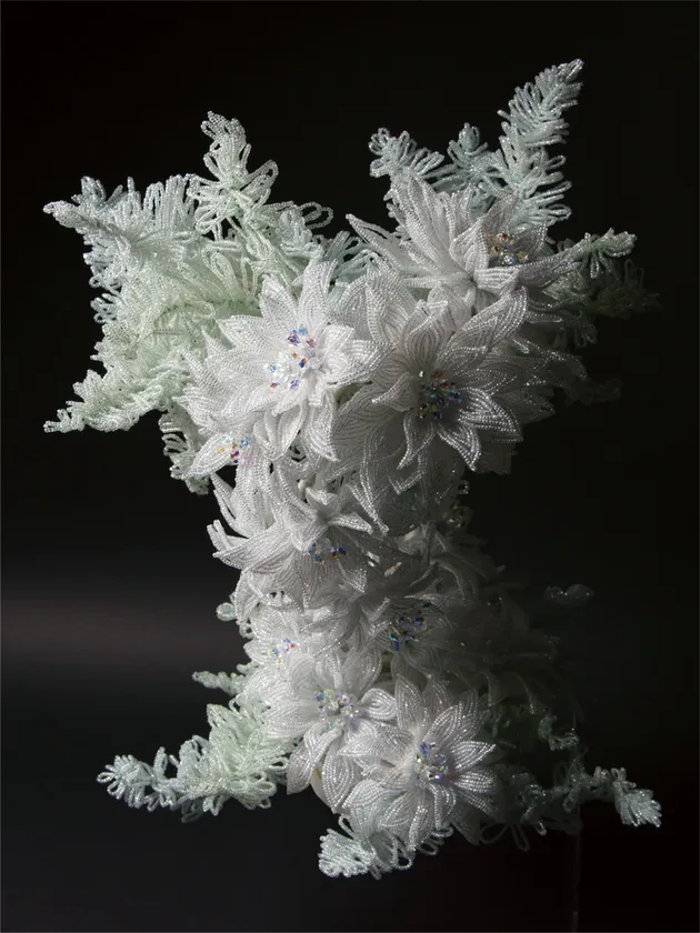 ニューヨーク在住時にそのキャリアをスタートさせ、独自の審美観によってビーズフラワーアートを作り出します。その特徴は、一粒一粒に想いを込めて立体的に形作る「フォーミング」にあり、その技術により表情豊かなビーズフラワーが生まれます。