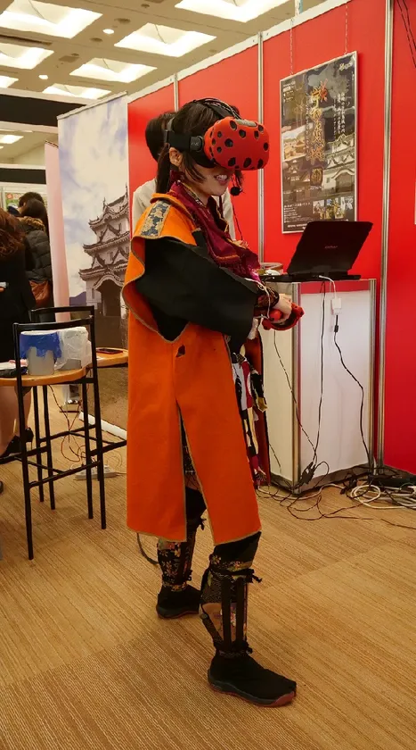 刀を片手に敵の攻撃を受ける、避ける、そして斬る! 本格VRチャンバラアトラクション「VS真田幸村」、 4/27~稼働開始