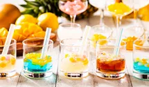 目にも楽しい3種類のジュレに、女性が嬉しいタピオカやアセロラ寒天など、約8種類のトッピングの中からお好きなものを選んでオリジナルの飲むゼリーを作っていただけます。