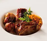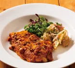 大人から子どもまで大好きなスペアリブは、甘辛いタレに一晩漬け込んで、オーブンでじっくり焼いたひと品。トマト風味のクスクスを添えました。