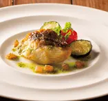 鱸のポアレを夏らしいさっぱりとしたトマトバジルソースで。ズッキーニなど旬の野菜とともにお召しあがりください。