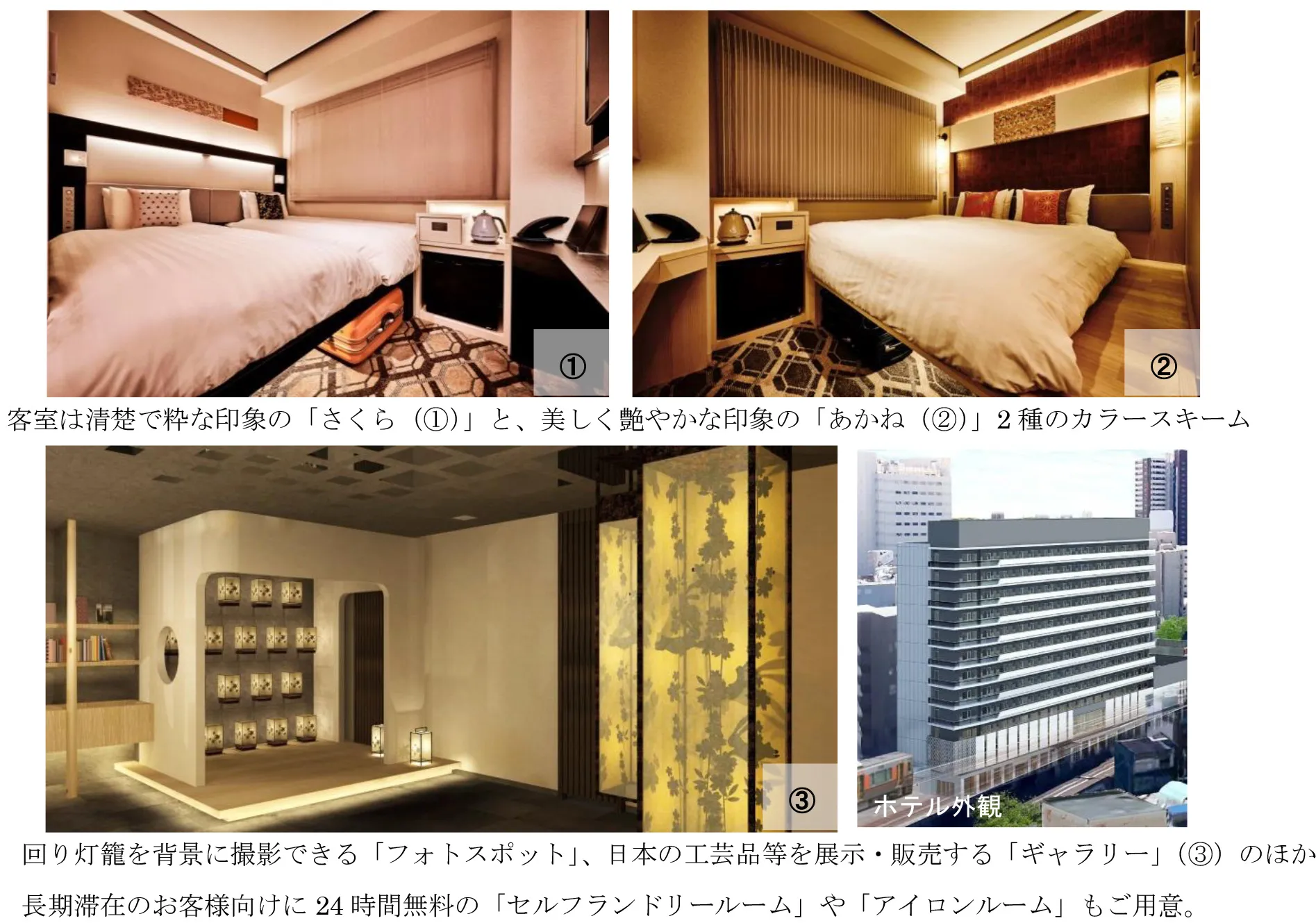 「Feel Another Osaka ~もうひとつの大阪“はなれ”へ~」をコンセプトに、館内のいたるところに日本の伝統的な色彩や文様、素材を用いて和の意匠をモダンに表現した、全室禁煙の宿泊主体型ホテルです。