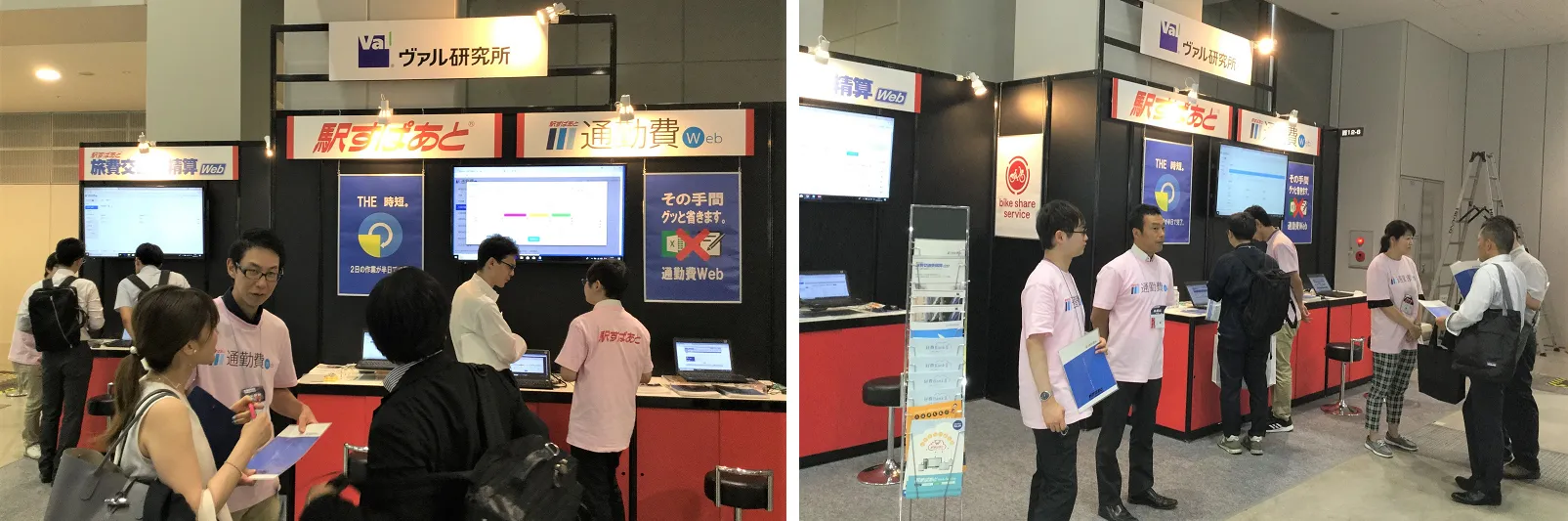 ヴァル研究所のブースでは、クラウド型通勤費申請・管理支援ツール「駅すぱあと 通勤費Web」と、旅費交通費の精算に特化した「駅すぱあと 旅費交通費精算Web」を展示します。消費税が10%に増税した際に発生する従業員の定期券代の見直し、精算や払い戻し業務のほか、適正な通勤経路のチェックや運賃計算などの業務効率化とコスト削減につながる活用方法をご紹介します。