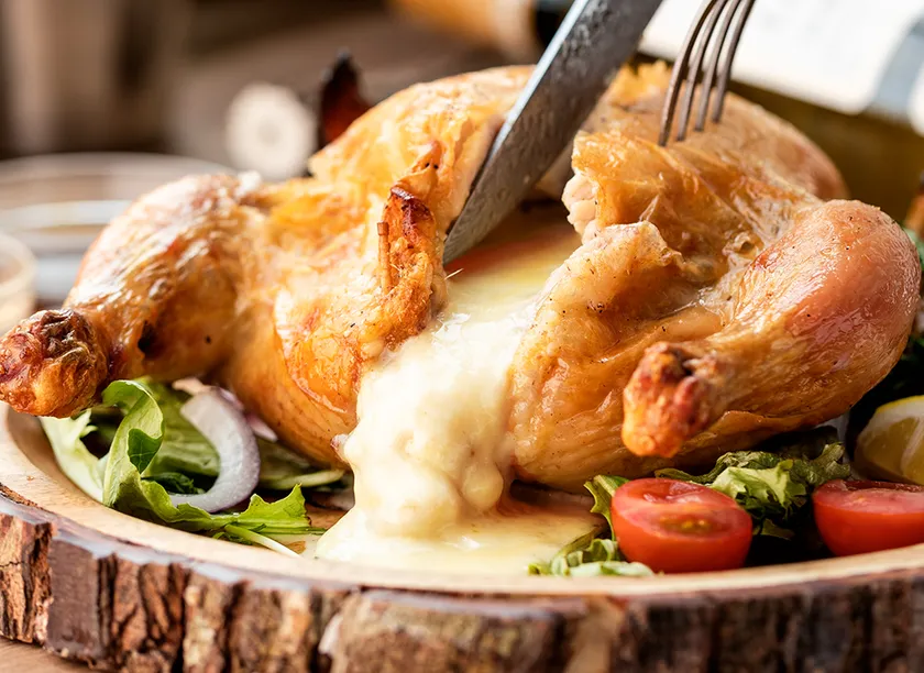 一羽丸ごと!ローストチキンのアリゴチーズ詰め