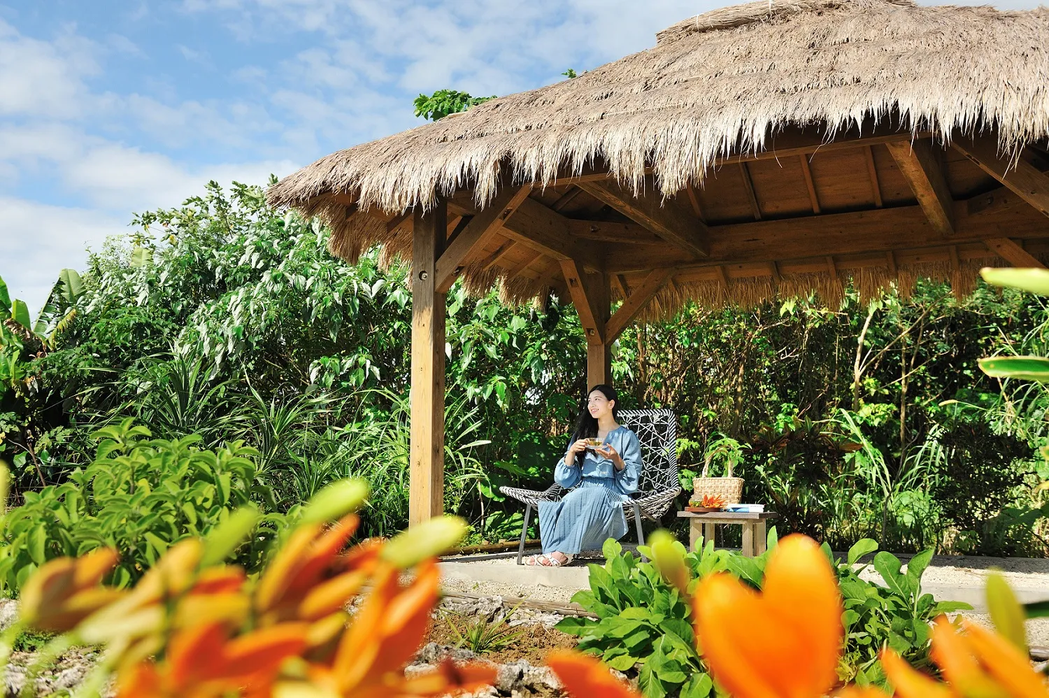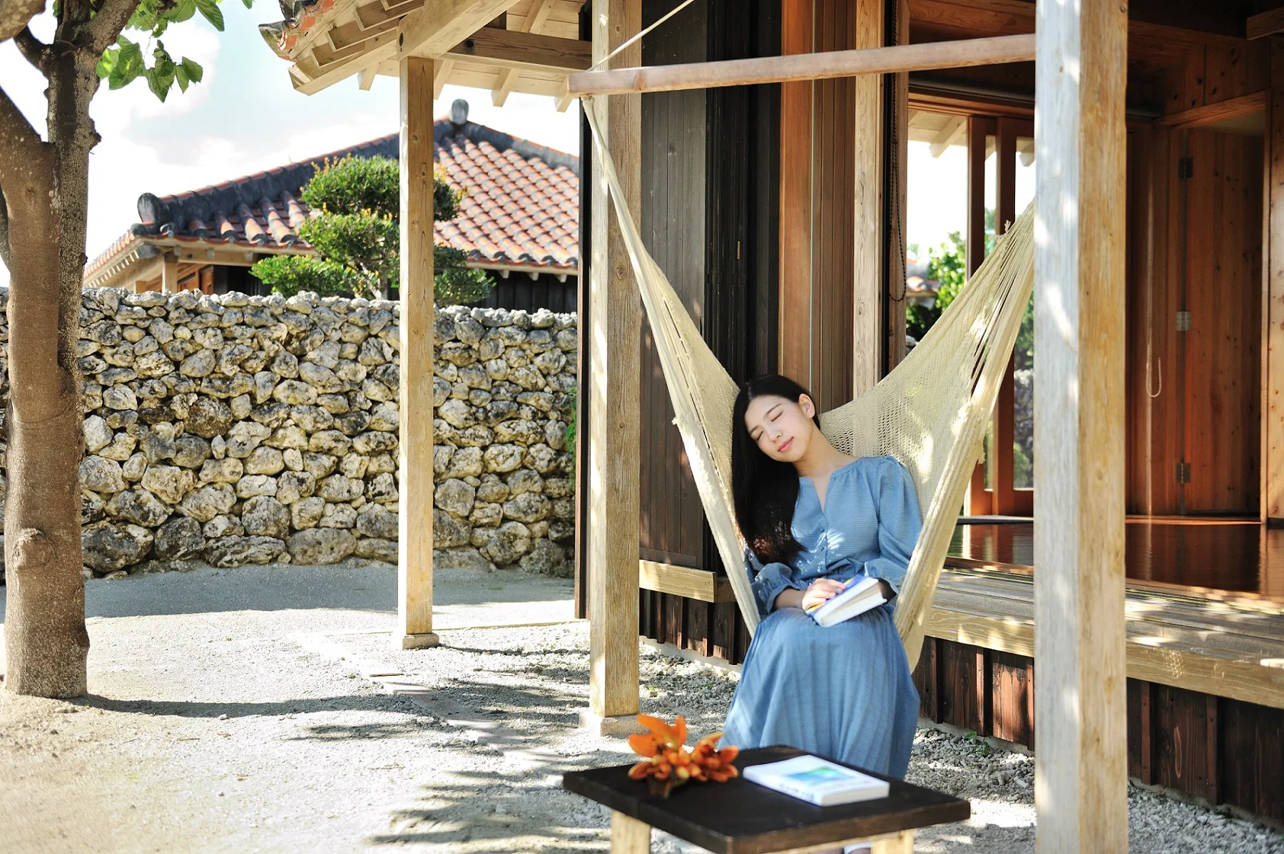東屋でのにーぶいティーでほっと一息ついた後、お部屋に用意したチェアモックでお昼寝します。ゆっくりと流れる島時間に身をゆだねることでリラックスし、まったりとした午後を過ごせます。