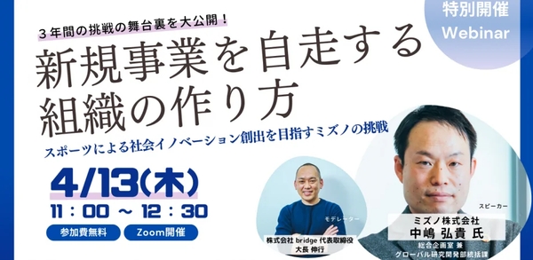 4/13(木)セミナー「新規事業を自走する組織の作り方〜スポーツによる社会イノベーション創出を目指すミズノの挑戦〜」