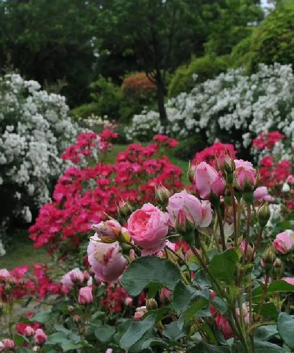晴れの日は陽射しを浴びて活き活きと爽やかに、雨の日には霧がかかり幻想的に咲くバラを鑑賞できます。