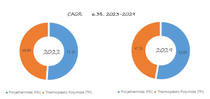 製品タイプ別では、ポリエーテルイミド(PEI)が最大セグメントで、2022年には売上高ベースで51%、販売量ベースで87%のシェアを占める。