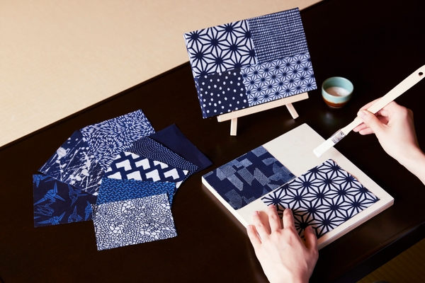 モダンなとちぎ民藝が息づく、木漏れ日の温泉旅館「界 鬼怒川」では、栃木県伝統工芸品「黒羽藍染」を用いたアートパネルを作ることができます。