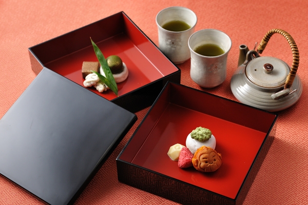 本プランでは、日光東照宮でのご祈祷後の直会として、日光東照宮御用達の和菓子店「日昇堂(にっしょうどう)」と作成した界オリジナルの「直会スイーツ」を提供します。現在一般向けには開放されていないプライベートな空間で、ご祈祷後のひとときを過ごすことができます。