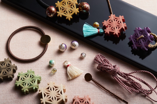 中禅寺湖の畔に位置する温泉宿「界 日光」では、栃木県伝統工芸品「鹿沼組子」を用いたアクセサリーを作成できます。