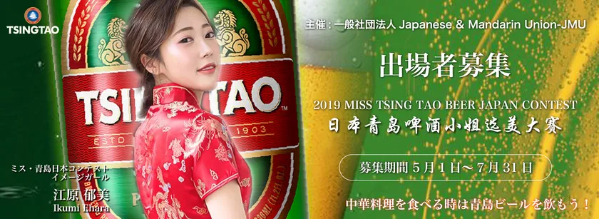 一般社団法人Japanese & Mandarin Union-JMU (以下 JMU、東京都豊島区、代表理事:浦 雄一)はミス・青島(チンタオ)ビールの募集を2019年5月1日開始しました。