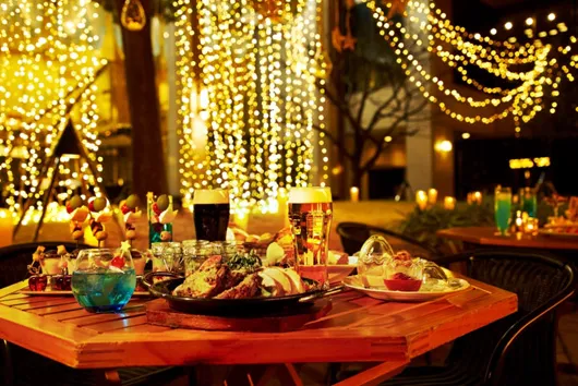 今年はグランカフェのテラスが、煌く“星”のイルミネーションとイミテーションキャンドルのゆらぎに包まれたフォトジェニックな空間に生まれ変わります。夜風にあたり、“星”を眺めながら、ビアタイムを楽しんでいただき、都会の中のリゾートで、幻想的で素敵な時間をお過ごしください。