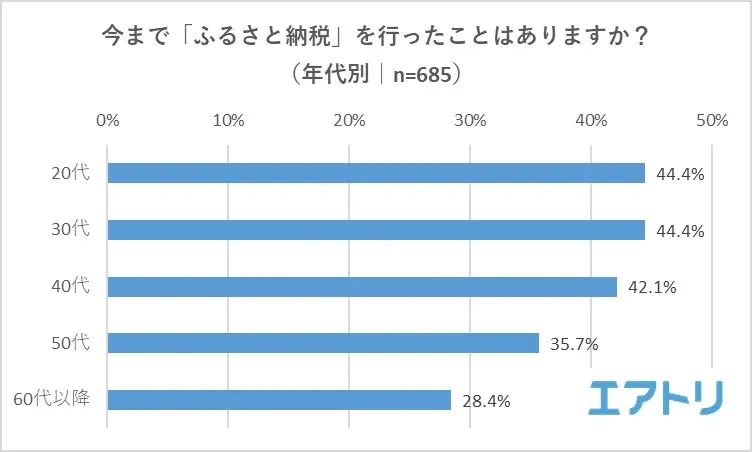 総合旅行プラットフォーム「エアトリ」(https://www.airtrip.jp/)を運営する株式会社エアトリ(本社:東京都新宿区、代表取締役社長:吉村 英毅、以下エアトリ)は、20代~70代の男女685名を対象に「ふるさと納税」に関する調査を実施しました。