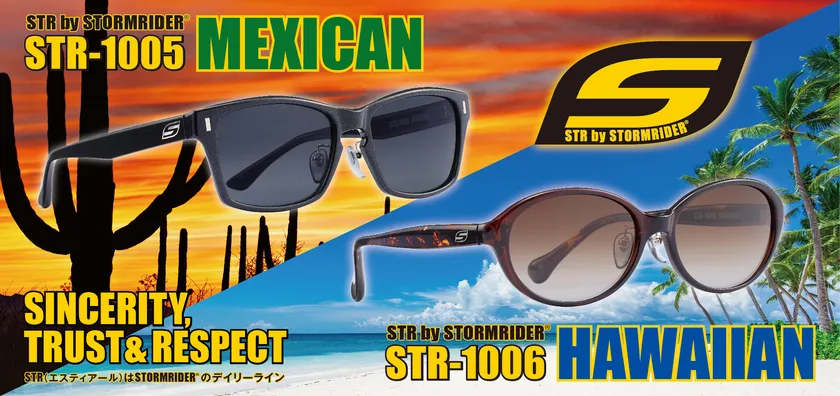 メガネ・補聴器を販売する「メガネのアイガン」( http://www.aigan.co.jp/ )を運営する愛眼株式会社(本社:大阪市天王寺区、代表取締役社長:下條 三千夫)は、フィッシング・アウトドア専用サングラス「STORM RIDER(R)」のデイリーライン「STR by STORMRIDER(R)」シリーズに、新モデルとして「STR-1005 MEXICAN/STR-1006 HAWAIIAN」の2モデルを2019年5月18日(土)より全国のメガネのアイガン店舗及び取り扱い釣具店にて販売を開始いたします。