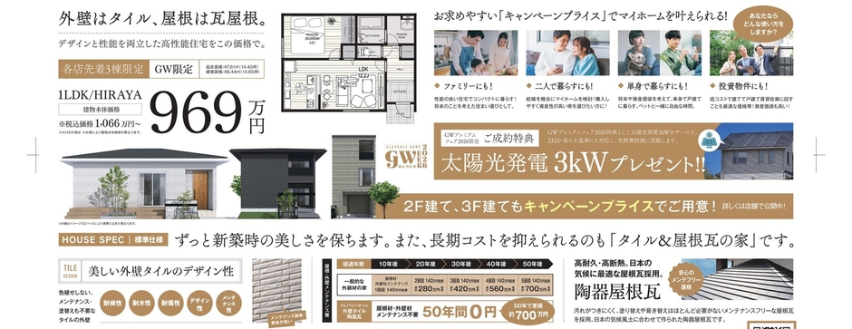・平屋969万円プランをはじめとした限定商品を用意