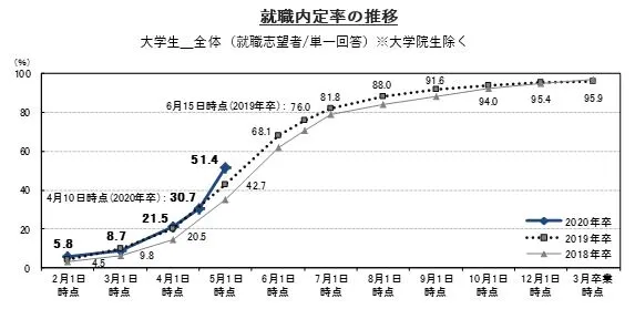 5月1日時点の就職内定率は51.4%で前年同月比8.7ポイント上昇