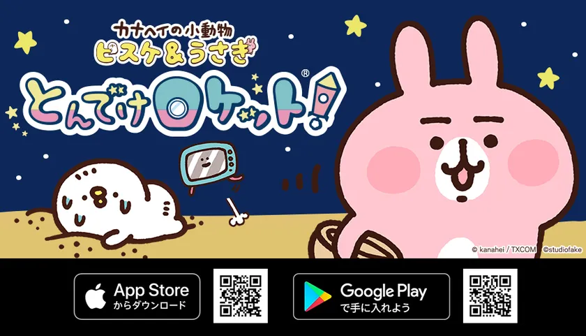 株式会社スタジオフェイク(本社:神奈川県川崎市、代表取締役:石本則子、岡安啓司)は、株式会社テレビ東京コミュニケーションズ(本社:東京都港区、代表取締役社長:大島信彦)が広告・商品化・映像化の独占窓口を務めるキャラクター、カナヘイの小動物「ピスケ&うさぎ」のiOS/Android(TM)端末向けパズルゲーム『カナヘイの小動物 ピスケ&うさぎ とんでけロケット!(R)』に追加機能を多数実装した「グランドオープン版」を2019年5月15日より配信開始いたします。
