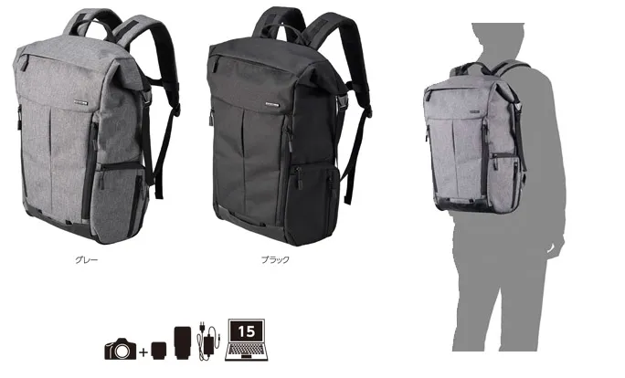 バッグを下ろさずにカメラを出し入れできるサイドアクセス構造のカメラ収納部と、ロールトップの上部収納部からなる便利な2気室のバックパックタイプのカメラバッグです。
