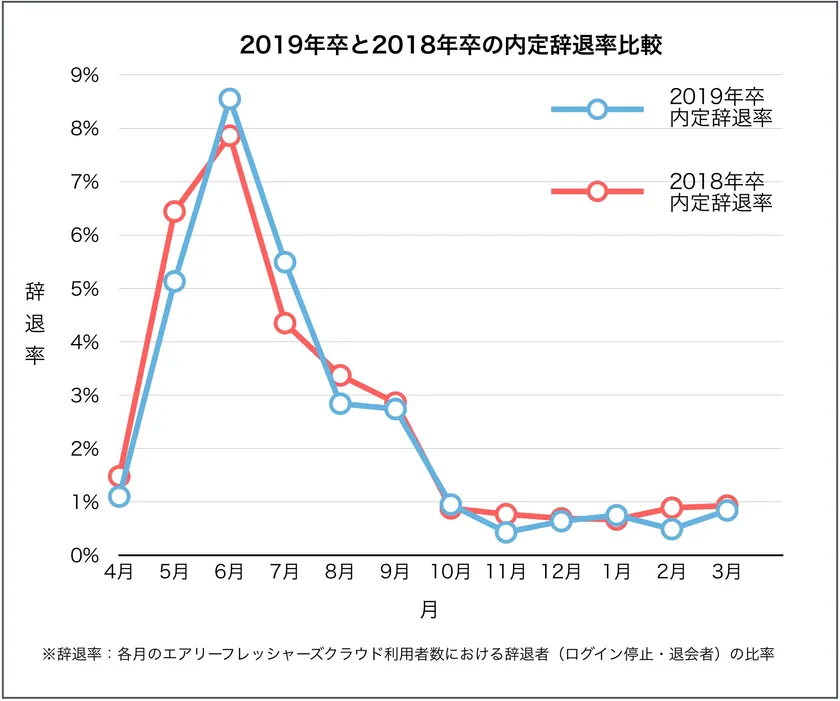 2019年卒採用においても、昨年同様、内定辞退は6月にピークを迎え、9月までは内定辞退が続くという結果となりました。