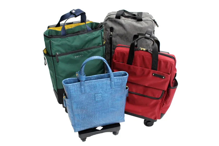 スワニーバッグは身体を支えるバッグとして毎日利用するお客様や、ビジネスなどで長距離移動に頻繁に利用される方が多くいます。使用頻度が高いとキャスターが摩耗するスピードも速くなりますが、スワニーではキャスター部分のみの販売を行っている為、お気に入りのバッグを長くご愛用いただけます。