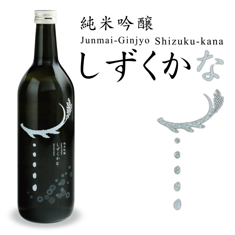 「しずくかな」のラベルデザインは、米から連想した「大地」と「実りの秋」をイメージしております。2018年発売の「純米吟醸しずくかな」に続くしずくかなシリーズの第2弾です。