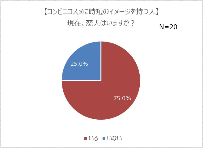 さらに、“恋人持ち”の人ほど、コンビニコスメに対して「時短」のイメージを持っている傾向も明らかになりました(75.0