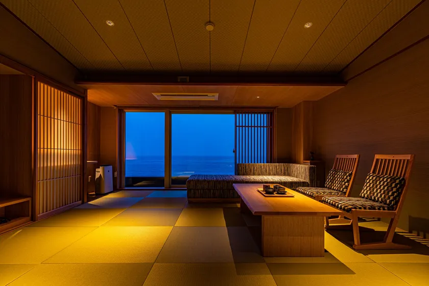 満月の夜は、静寂な海に一筋のムーンロードが現れ、天気の良い日は大きな窓から心地良い磯風が客室へそよぎ、自然の息吹を感じる非日常の時間をお楽しみいただけます。
