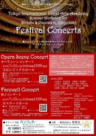 2014年「日本の心の歌を世界のクラシックに」をモットーに日本歌曲の世界での振興活動を行う、NPO法人日本伝統文化交流協会のプロジェクト、FosterJapaneseSongsを主催していたメンバーにより、TokyoInternationalVocalArtsAcademyTIVAA)が開設されました。以来、TIVAAは、日本人歌手や声楽専門ピアニストが世界で活躍し、各地で日本歌曲を歌う日を実現するために、日本の声楽家と、声楽専門ピアニストの皆様に、世界レベルのトレーニングプログラムを提供しています。毎年夏に、開催される東京ワークショップ(Resonate音楽企画主催)の運営とコンサートの開催。また、一般社団法人奏楽会がイタリアで開催する「モンテフェルトロ音楽祭(Montefeltrofestival)」の参加者選定などを通じて、日本人音楽家の技術の向上と海外での演奏機会の提供を行っています。
