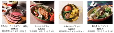 スパイスで味付けした牛ミスジ肉のローストや豪快に網焼きしたサーモンが登場!期間限定メニューとして、今年注目のラム肉を10種類のスパイスで柔らかく煮込んだスープカレーや、鮎を丸ごと1匹乗せたリゾットなど、夏らしいメニューがそろいます。