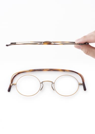 そのようなコンセプトから開発されたペーパーグラスのフレーム厚は約2mm。折りたたむと平坦になり、付属の携帯用ケースに収納しても約8mmという薄さです。開くとダイナミックな曲線が現れ、やさしく顔にフィットします。テンプルの回転軸を傾けるというシンプルな解決策で、老眼鏡として、独自の機能性、堅牢性、使い勝手、そして美しさを実現しました。