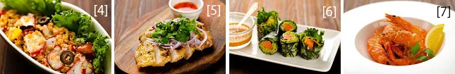 ・チキンとアボカド キヌアとカリフラワーライスのサラダ 900円 など