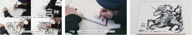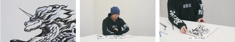 真島:60分真剣に絵を描くってのはね、すごいとても大変なことだと思うんですけども、せっかく参加するんでしたら、楽しんで、参加して欲しいなと思います。皆さんの描いた麒麟、僕も見るの楽しみにしてますんで、ぜひたくさん応募お願いします。