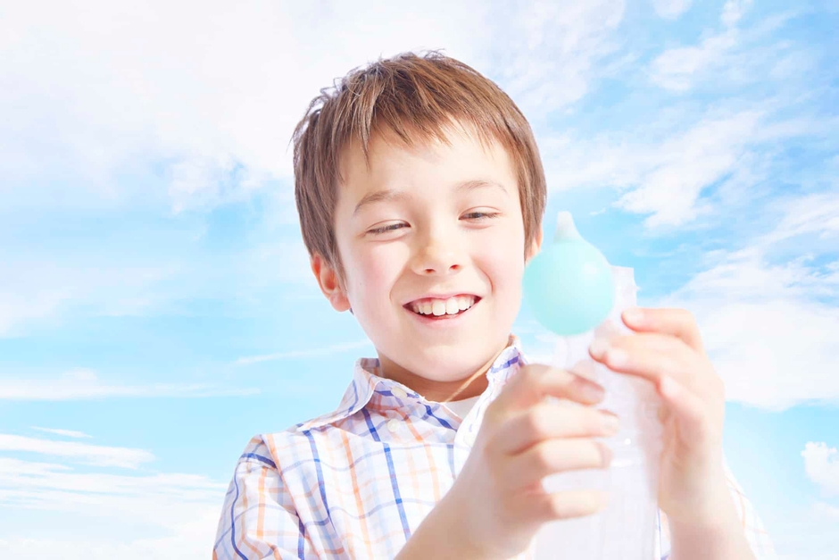 雲は水蒸気と空気中のちりが集まってできています。雲ができる空は気圧が低いため、空気が空に上がっていくと、急激に膨らみ温度が低下します。空気中に含まれていた水蒸気が冷され、ちりに集まってできる水や氷の粒が雲の正体です。実験1では、空に雲が発生する時と同じ環境を再現することで、簡単に雲の作り方を学べます。水の代わりに、アルコールを入れたペットボトルに外から空気を入れると、空気同士のぶつかりによって中の温度が上昇。空気が一気に飛び出すように空気を抜くと、中が冷やされ、雲が発生します。