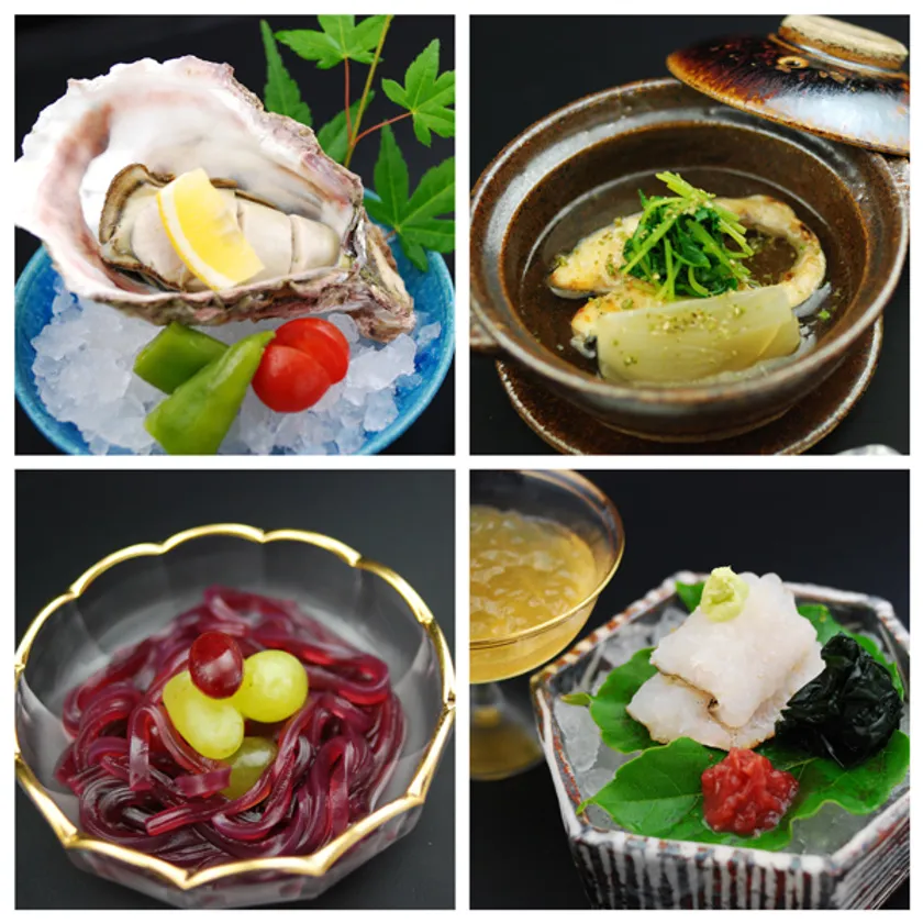 メニューは、大阪の料亭大和屋伝統の流れを汲む正統派の和食を中心に、御会席15,000円・10,000円・天然とら河豚おまかせコース15,000円の3タイプのほか、季節の一品料理をご用意致します。お料理ひとつひとつに意味とこだわりを持ち、お食事いただくお客様へ感動をお届けします。