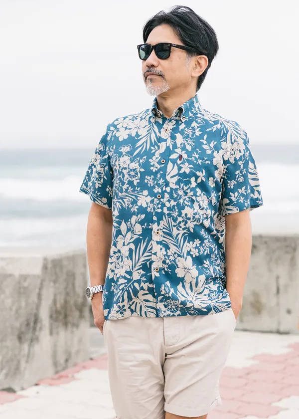 ハイビスカスの花をあしらったトロピカルなデザインや、沖縄の伝統工芸品である琉球紅型(びんがた)や琉球絣(かすり)柄のデザインは、一見派手でも袖を通せば不思議としっくり顔に馴染むため、実は着る人を選びません。