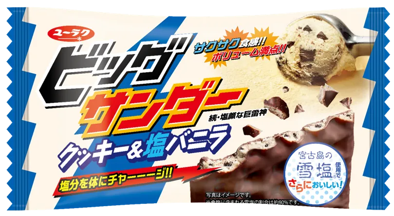 続・塩顔な巨雷神! 昨年大好評の塩バニラ味が限定復活 ビッグサンダー クッキー&塩バニラ
