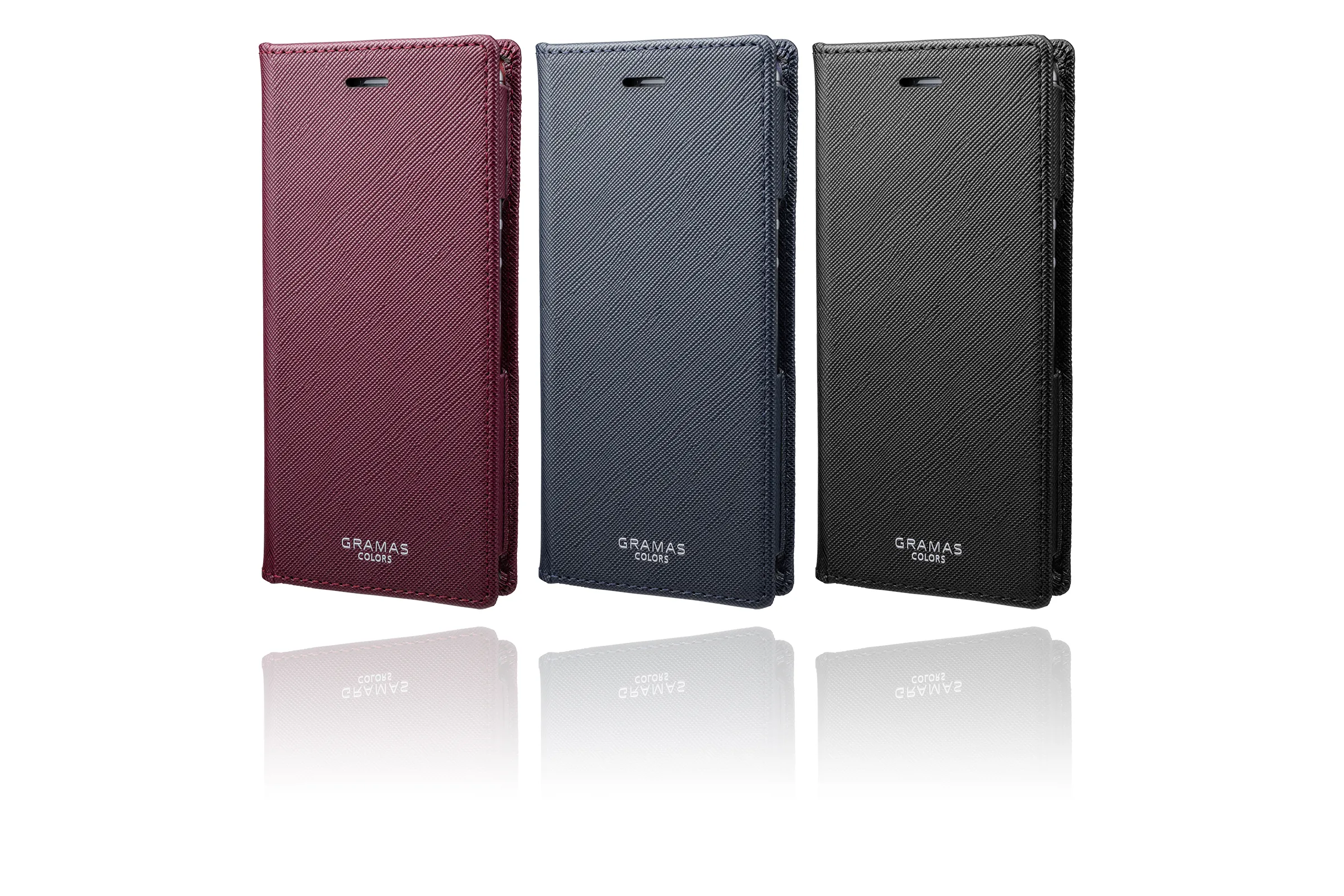 GRAMASの代名詞でもある手帳型本革ケースの機能性はそのままに、素材に合成皮革を採用することで、よりお求めやすい製品を目指しました。汚れと傷に強い合成皮革の特性を最大限引き出しつつ、ディテールなどを丁寧に作り込んでいます。