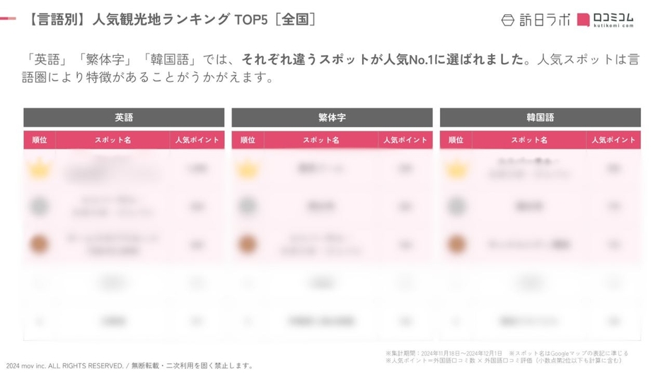 そのほか、言語別ランキングや口コミ分析の詳細は、調査資料をご覧ください。